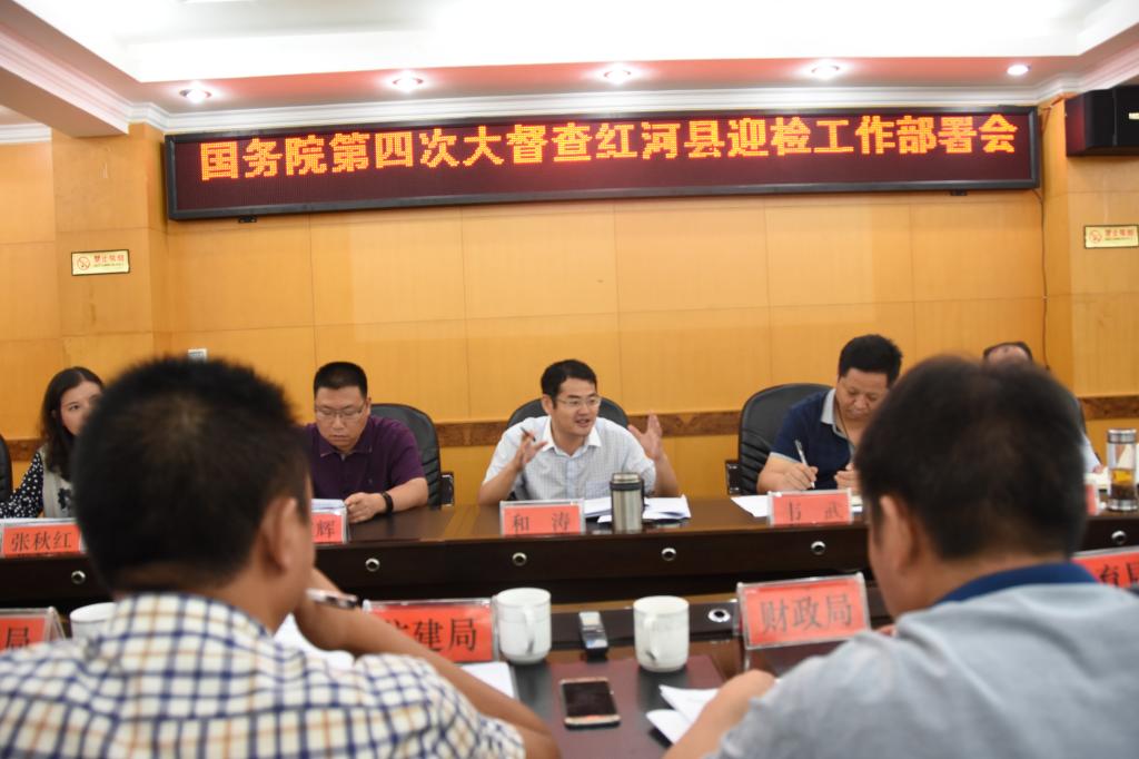 6月21日,县长和涛主持召开红河县国务院第四次大督查迎检工作部署会,会议强调,各级各部门要切实抓好大督查迎检工作,要摸清底数,发现问题、抓好整改,推动全县经济平稳健康发展,社会和谐稳定。