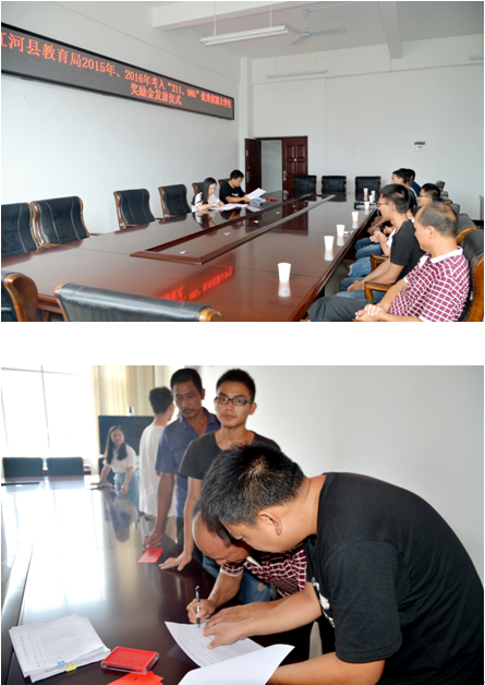 近日,红河县教育局举行“2015年、2016年考入“211、985”优秀贫困大学生奖励金”发放仪式。发放仪式上,奖励了符合条件的红河籍大学生共计19名,奖励金额每生1000元,共计发放1.9万元。。