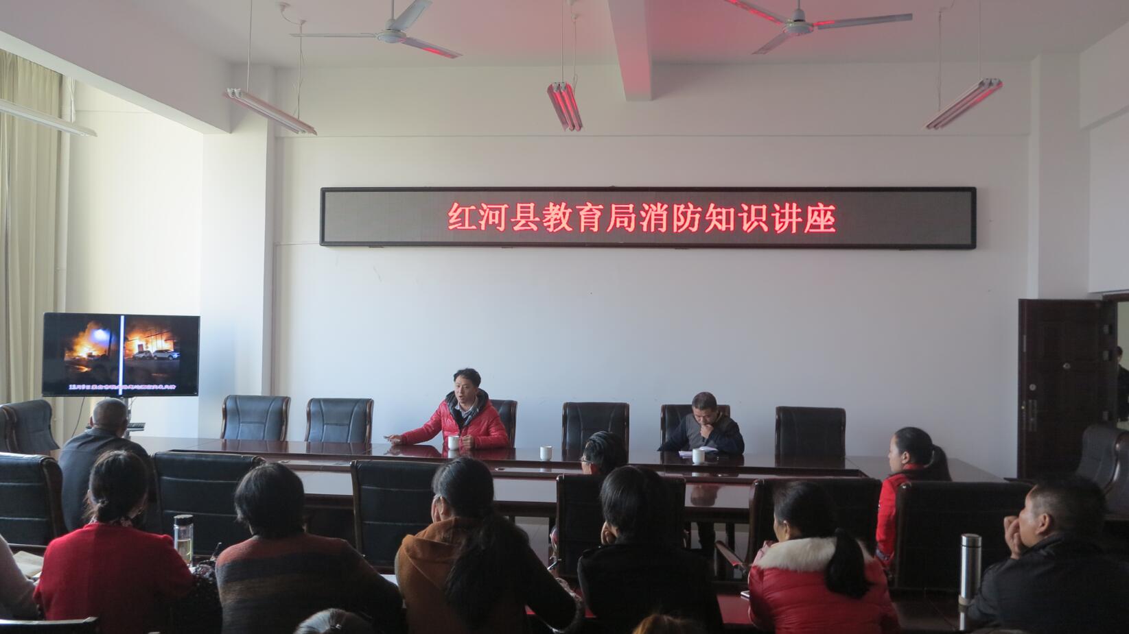 为进一步加强消防安全工作,增强干部职工消防安全意识与应急自救能力,预防和减少火灾事故的发生,1月23日,红河县教育局邀请红河火灾防治中心张俊超同志举办以“珍惜生命.远离火灾”、“提高消防意识.共创平安家园”为主题的2018年消防安全知识讲座,全体干部职工参加学习。