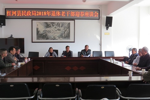2月12日,在新春佳节来临之际,红河县民政局组织召开离退休老干部迎新春座谈会。局全体党组成员、县老龄办和7位退休老干部欢聚一堂,辞旧迎新,共庆佳节。