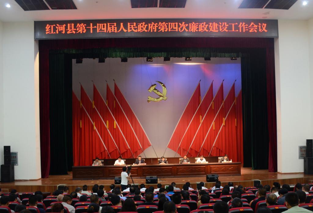 4月5日,县第十四届人民政府第四次廉政建设工作会议在红河会堂召开。县长和涛,县人大常委会主任孙志磊,县委常委、县纪委书记杨兴成,县委常委、副县长宋文,副县长宋文辉,政协副主席张红锋出席会议,各乡镇长,财政所长,政府部门各单位领导和报账员、会计、出纳;学校、医院负责人共300人参加了会议。