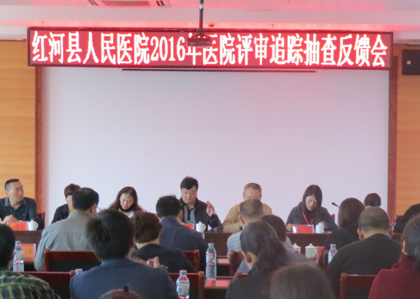 在反馈会上,县长和涛指出:医院评审追踪抽查是促进医院整改的一个重要措施,此次评审组到县人民医院进行评审,体现了省卫计委对红河县医疗卫生事业的重视,体现了对红河县各族人民群众健康的关心,通过评审,达到以评促改、以评促进、以评促质的目的。红河县将对存在的问题进行认真梳理和整改。一是政府要继续加大投入,特别是人力资源保障上的投入,使医院硬件设施和技术得到提升。二要深入推进公立医院改革,加大改革力度,合理调整用人和分配机制,以此留住人才、吸引更多人才到红河县,为红河医疗事业做贡献。三要加强管理,加强对医务人员的管理和领导班子的建设,提升干部职工的整体素质和医疗水平。四要以评审为突破口,以问题为清单,逐项进行整改,明确整改措施、时限和责任人,把整改结果向上级卫计部门进行汇报。以评审为契机,进一步推进红河县医疗事业的发展。