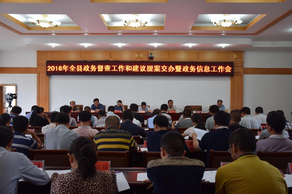 5月17日, 2016年全县政务督查工作和建议提案交办暨政务信息工作会议在县政府六楼会议室召开,县长和涛、县人大常委会主任孙志磊、县政协主席高劲松、县委常委、常务副县长杨世红、副县长刘勇及13个乡镇长、县属有关部门主要负责人参加会议。
