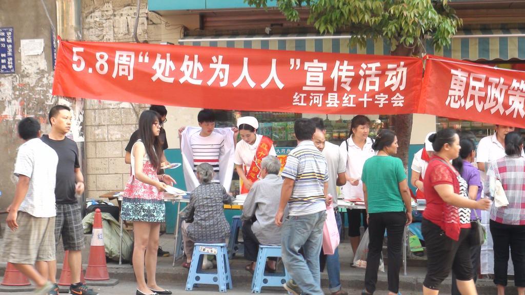 县红十字会围绕“红十字处处为人人”的主题,开展“2016年红十字博爱周”系列活动。一是开展培训,分别到消防大队、武警中队开展应急救护、造血干细胞捐献等相关知识培训;二是开展帮扶活动。为红河二中10名特困学生发放助学金600至1000元不等,共8000元;为3名困难群众每人发放救助款2000元。三是联合县地震局、县医院、中医院、妇幼保健院、同仁医院等单位,在跑马路农贸市场开展“5·8”世界红十字会日和“5·12”防震减灾日宣传活动。悬挂横幅3条,为群众义诊300人次,发放宣传扑克80盒、围裙500多条、扇子200多个、环保袋300多个、水杯500多个,发放宣传材料2000多份,现场募捐人民币205.70元。同时,组织红河一中600名学生开展红十字防灾避险知识竞赛活动。