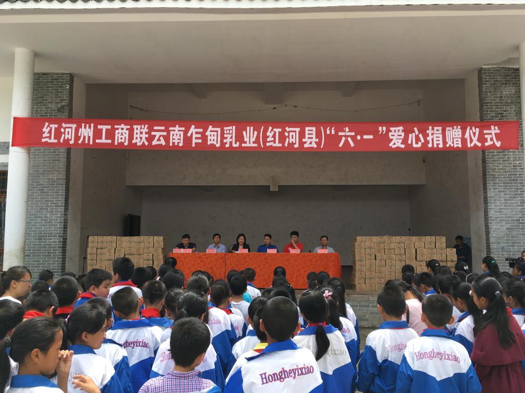 在“六一”儿童节即将来临之际,通过我县工商联协调,云南乍甸乳业有限责任公司向红河县捐赠10万盒共计价值20万元的儿童营养牛奶。5月30日中午,在红河县灯光球场举行“红河州工商联云南乍甸乳业(红河县)‘六一’爱心捐赠仪式”,州工商联副主席叶鸿庄、云南乍甸乳业有限责任公司总经理助理袁文兢同志,红河县政协副主席、工商联主席张迎春以及红河县教育局、扶贫办等部门领导出席了捐赠仪式并讲话。