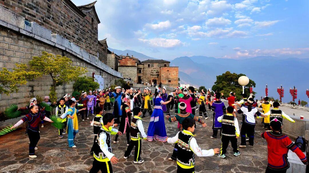 在撒玛坝万亩梯田旁,身着鲜艳民族服饰的舞者随乐起舞,裙摆飞扬间尽显劳动之美与生命活力;马帮古城的青石板路上,古老建筑与翩跹舞姿相互映衬,传递出非遗与地域文化交融的深厚底蕴。摄制组运用多角度机位与虚实结合的拍摄手法,全方位呈现出乐作舞独特的艺术风格与文化内涵。