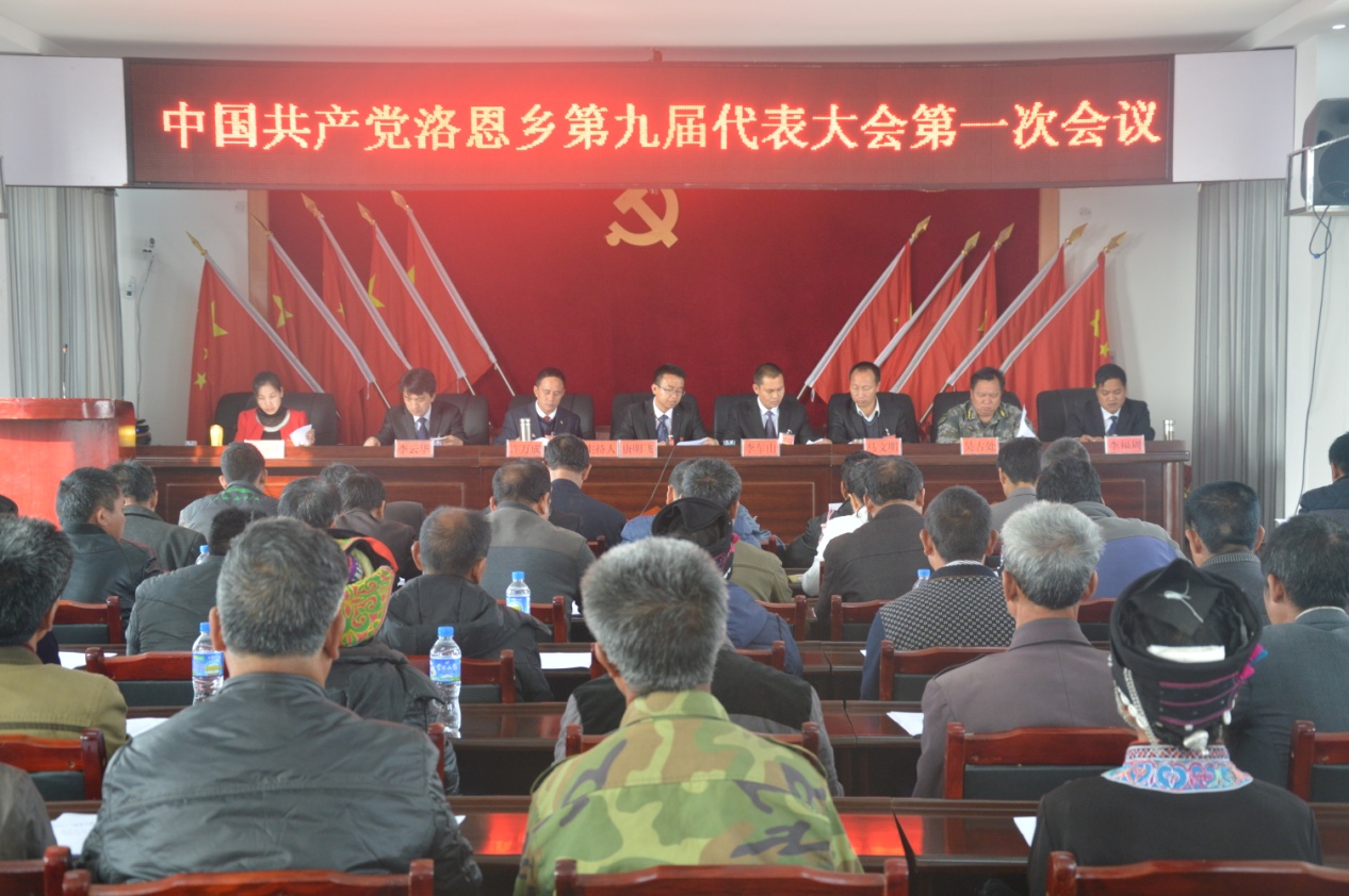 会上,唐明飞同志代表中共洛恩乡第八届委员会作题为《敢于担当务实求新 为全面建成小康社会而努力奋斗》的工作报告。他指出,中共洛恩乡第九届代表大会第一次会议是在“十三五”规划开局之年,全力推进精准扶贫精准脱贫工作之际召开的一次十分重要的会议,大会要深入贯彻党的十八大、十八届四中、五中全会和习近平总书记系列重要讲话精神,全面总结“十二五”工作及2015年工作,科学谋划2016年及“十三五”工作,动员全乡广大党员干部群众,以坚定的信念、担当的精神、务实的作风,举全乡之力打赢精准扶贫精准脱贫攻坚战,确保在2020年全面建成小康社会。