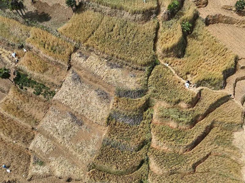 麦浪泛黄,金镰开割,石头寨乡冬小麦喜获丰收,金黄的麦穗在暖阳下熠熠生辉,一幅“丰”景美如画,奏响了一曲充满希望与喜悦的丰收之歌。