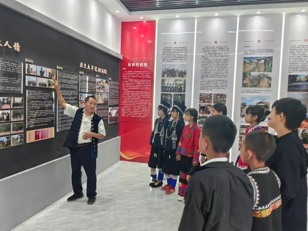 台安村村史馆里,老一辈传承人讲述着哈尼文化故事,让民族文脉代代相传;寒暑假里,台安的青年学子定期赴约,与村里孩子共建图书角、绘制《绘梦手册》,传递温暖与力量;洛恩小学课堂上,孩子们共唱哈尼歌谣、同跳民族舞蹈,民族团结的种子在心中生根发芽。