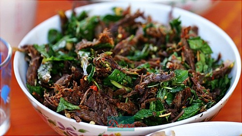 迤萨小黄牛干巴是云南省红河州红河县迤萨镇的特产。红河县生产的小黄牛干巴,色泽红润,芳香诱人,人见人爱,成为馈赠亲友的最佳礼品。