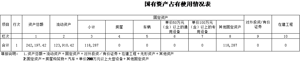 截至2017年12月31日,云南省红河县地方志编纂委员会办公室部门资产总额242,197.42元,其中,流动资产123,910.42元,固定资产118,287元,对外投资及有价证券0元,在建工程0元,无形资产0元,其他资产0元(具体内容详见附表)。与上年相比,本年资产总额减少-54,694.3元,其中;流动资产增加47,273.7元,固定资产减少101,968元,对外投资及有价证券增加(减少)0元,在建工程增加(减少)0元,无形资产增加(减少)0元,其他资产增加(减少)0元。处置房屋建筑物0平方米,账面原值0元;处置车辆0辆,账面原值0元;报废报损资产0项,账面原值0元,实现资产处置收入0元;出租房屋0平方米,账面原值0元,实现资产使用收入0元。