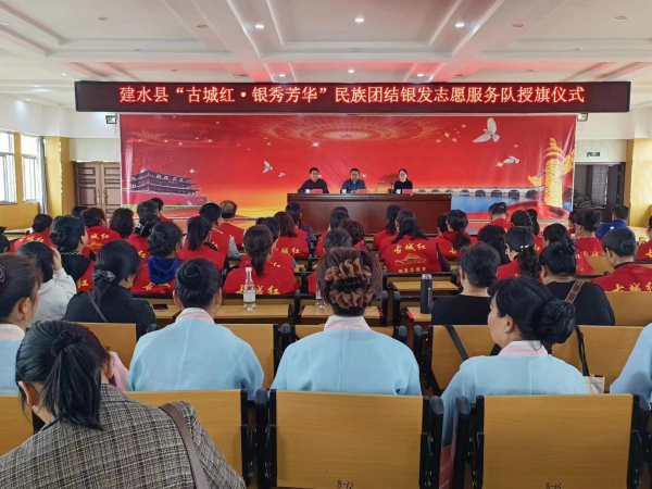 近日,建水县在老年大学举行“古城红 银秀芳华”民族团结银发志愿服务队授旗仪式。县委统战部副部长、县民族宗教事务局局长张发飞出席会议并讲话,县委组织部副部长、老干部局局长汤瑞雪主持,县民宗局领导,县老年大学志愿服务队及老师和学员共160余人参加仪式。