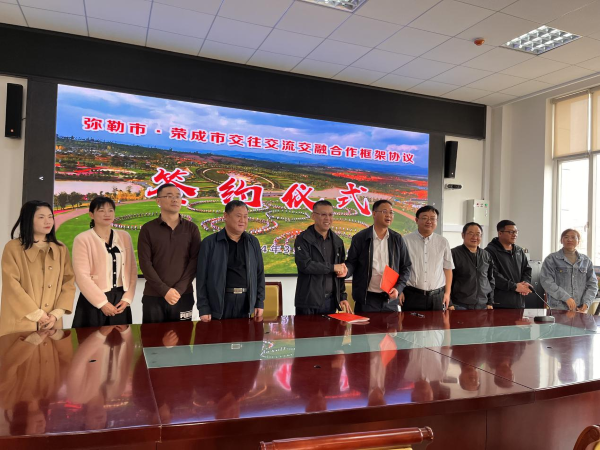 为贯彻落实中央民族工作会议精神,进一步深化山东、云南两地东西部协作工作,以铸牢中华民族共同体意识为主线,充分发挥双方资源优势和特色,谋求建立长期、稳定、共赢的全面战略合作伙伴关系,促进各民族广泛交往、全面交流、深度交融,山东荣成与弥勒市“三交计划联盟”在弥勒市签订。