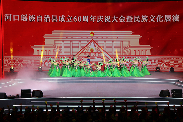 六十载风雨兼程,一甲子继往开来。11月15日,河口瑶族自治县成立60周年庆祝大会在河口隆重举行。千里瑶山水含笑,各族群众身着节日盛装,怀着无比喜悦的心情载歌载舞,共同回眸河口的沧桑巨变,见证河口60年来的辉煌成就,展望河口的美好明天。上午9时,在雄壮的国歌声中,庆祝大会拉开序幕,现场一片欢腾。