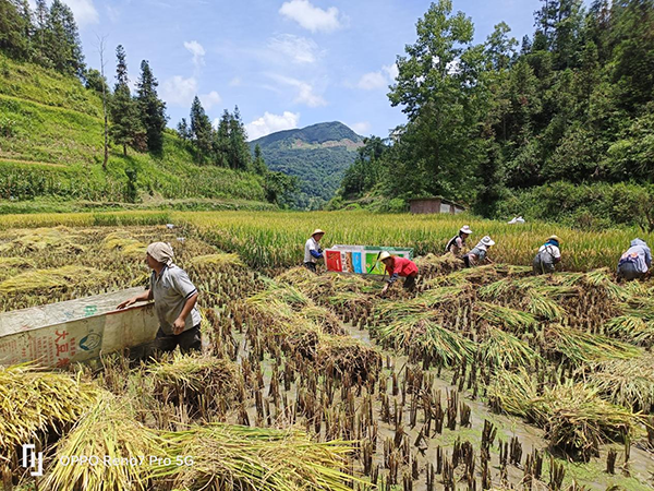 技术赋能促进发展。依托县粮食购销公司成立元阳县哈尼梯田有机红米专业合作社,从红河州农科院引进“梯田红米红阳3号”“梯田软米中浙优8号”等优质良种,通过无偿提供红米籽种、薄膜、技术服务,与农户签订收购协议等,积极引导和鼓励各族群众种植梯田红米。目前,共发展社员5000余户,辐射带动元阳县种植梯田红米面积达10万亩,种植农户2.6万户,总产量达3.5万多吨,实现农业总产值2.2亿元,红米亩均收益提升至3000元,不断凝聚起各族群众共同团结奋斗,共同繁荣发展的坚定信心和决心。