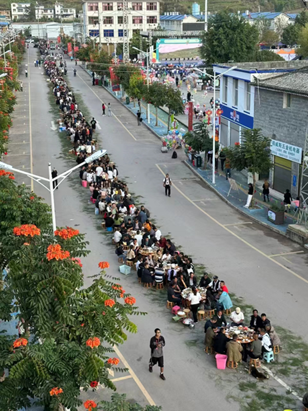 以美食为介,共叙“团结情”。哈尼长街宴是活动中最具特色的环节。在红河县垤玛大道上沿街陈列数百张竹桌,桌上摆满了各式各样的特色美食,琳琅满目,香气四溢,让人垂涎欲滴。地方特色菜应有尽有,游客在感受共享美酒佳肴的同时,与当地各民族群众对酒歌,欣赏美妙动听独具韵味的哈尼敬酒歌,大家欢聚一堂,在交往交流中加深了解,增强了民族团结情谊。
