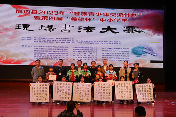 近日,屏边县举办2023年“各族青少年交流计划”暨第四届“希望杯”中小学现场书法大赛。来自全县中小学的80名各族青少年参加比赛。