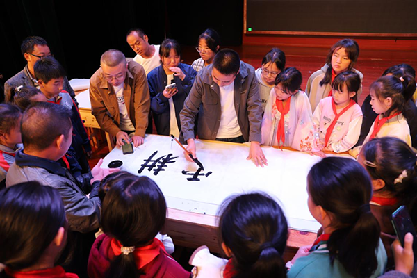 比赛分小学组和中学组两个组别,评委老师进行现场打分及点评,还邀请老师现场书写示范。
