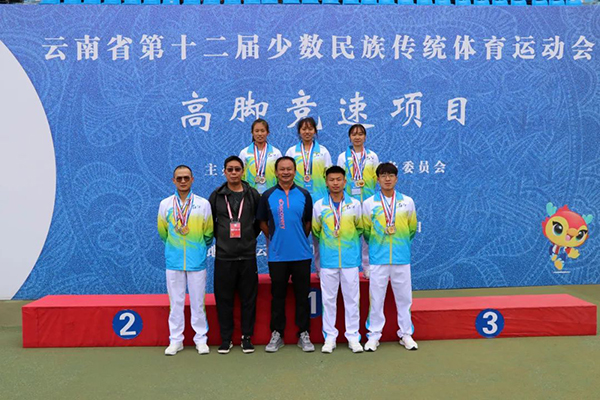 高脚竞速队在本次比赛中也取得了3金9银2铜的好成绩。“这次比赛没有发挥好,有一点遗憾,回去以后会加强训练,争取下一届取得更好的成绩。”高脚竞速运动员陆艳珍说。