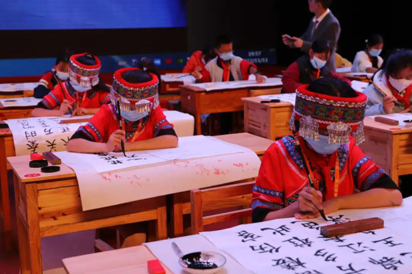 一是举办屏边县2022年“希望杯”中小学生现场书法大赛,邀请州内知名书法家参与活动,围绕“传承传统文化,弘扬国粹魅力”赛事主题,评选出一等奖1名、二等奖2名、三等奖3名、优秀奖14名、鼓励奖20名。通过比赛活动,引导培养学生积极传承国学文化,弘扬民族瑰宝。二是邀请县民族文化工作队以本地民族文化相融合创作民族团结进步大课间操,积极向各中小学校推广,并举办屏边县民族团结进步大课间操比赛活动,评选出一等奖1名、二等奖1名、优秀指导老师1名。三是打造“屏小榴民族团结进步示范宣讲团”品牌。从全县各中小学挑选30名优秀青少年组成“屏小榴民族团结进步示范宣讲团”,以“中华民族一家亲,青春向党共奋进”为主题,开展宣讲60余次,通过宣讲社会主义核心价值观、中华民族共同体意识,爱国主义、英雄人物、先进个人和先进集体事迹、民族团结故事等,教育引导全县青少年铸牢中华民族共同体意识,增强对伟大祖国、中华民族、中华文化、中国共产党、中国特色社会主义的认同,争做屏边县民族团结进步事业发展的推动者。