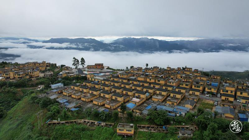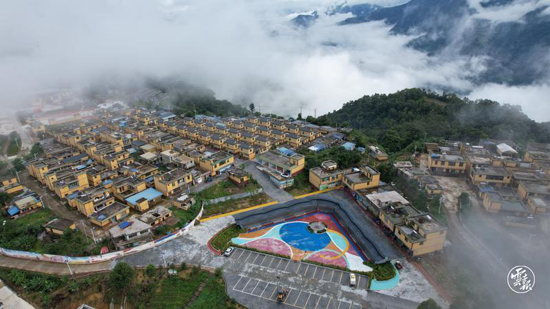踏入村子,环境清幽、房屋齐整。云雾从河谷渐渐飘起,在村子间随风游走。万寿菊、格桑花等在道路两旁竞相开放,鲜艳的五星红旗高高飘扬在小广场中央……