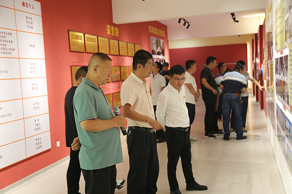 大家边走边看,了解基地布展设计框架,项目建设进展情况,听取州民族宗教委一级调研员张俊伟介绍布展情况说明。参加人员对布展图片、文字说明进行认真审核,并提出修改建议和意见。
