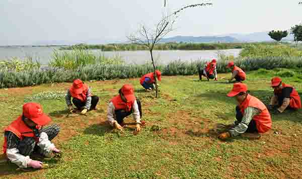为了保障群众就业有岗位,管理局严格要求村委会及第三方公司,在湿地管护用工时,六成以上的用工要用沿湖村民,尤其是建档立卡贫困户,低保户及退塘、退耕、还湿、还湖农户等特殊群体。如今,在湿地公园管护中,300余名湿地管护人员全部来自沿湖周边失地农民,每人每月工资2000元至5000元。