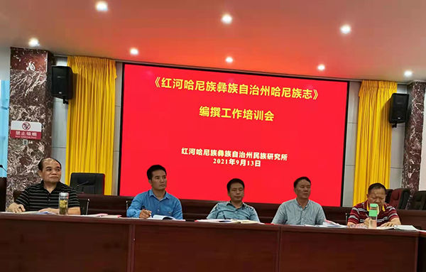 9月13日,红河州民族研究所在州民宗委一楼会议室举办培训会,对《红河哈尼族彝族自治州哈尼族志》(以下简称《志书》)的编撰工作开展业务培训。州民族研究所所长张云、承担编撰任务的哈尼学会会员参加培训。州民族研究所副所长陈来三主持培训会。